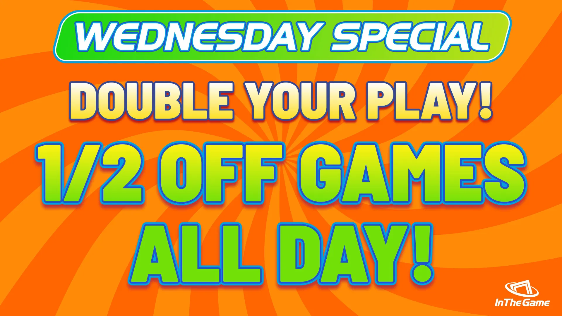Visit In The Game for DOUBLE PLAY 1/2 Price Games every Wednesday & Friday!!